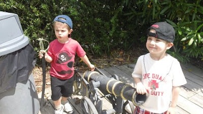 My mom came up this past weekend and took the boys down to Florida with her for Spring Break. They are loving being on vacation (and spoiled) with Grandma and Grandpa. Here is a picture that she sent to me of them ready to go down to the pool.